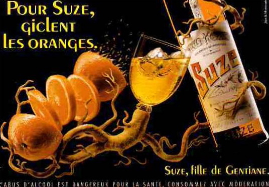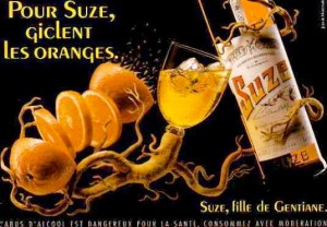 Dat vind ik nu echt leuk: laat iemand blind aan Miroir des Vanités ruiken, zeg niet dat het een geur maar een populair Frans aperitief is dat wordt gedronken in combinatie met crème de cassis en chablis (althans zo heb ik het geleerd). Laat hem raden. Het proefkonijn met een beetje ‘drankervaring’ moet dan antwoorden: ‘Dat is nogal duidelijk, Suze!’ Suze wordt gemaakt van de gentiaanwortel en heeft een bitterzoete smaak met toch aangenaam zoete overhand.