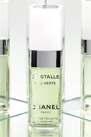 Je weet het niet, maar volgens het couturehuis zou ‘mademoiselle Chanel die parfums altijd enigszins schertsend lekkere geurtjes noemde’, Cristalle uit 1974 met de doorschijnende luchtigheid van ochtenddauw hebben gewaardeerd’. Het bijzondere hieraan volgens Chanel: de partituur gecomponeerd rondom kamperfoelie. Je weet het niet, maar grote kans dat mademoiselle ook tevreden zou zijn geweest met Cristalle Eau Verte. Heeft hetzelfde kristaleffect als zijn voorganger alleen met nieuwe facetten. Of zoals je wil: ‘Een groene echo van de originele creatie’. Of zoals je wil: ‘Een moment van puur genot dat doet denken aan het effect van een verfrissende regenbui aan het eind van een warme zomerdag’. Heel eerlijk: vindt de flacon een beetje saai, beetje te veel ‘unstylish’ seventies, te weinig nu. Geef mij maar de klassieke Chanel-parfumflacon. En waarom geen lieftallig meisje die ons groen en kristalhelder tegemoet lacht. Ik bedoel, Chanel deed het wel met de eau fraîche-variatie van Chance uit 2007.
