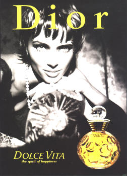 In 1995 en 1996 lijken de prestigieuze parfummerken een lijn te trekken. Want wat hebben Cartiers So Pretty, Versace’s Blonde, Elizabeth Ardens 5th Avenue, Guerlains Champs-Elysées, Givenchy’s Organza en Diors Dolce Vita gemeen? Ze zijn allemaal zeer bloemrijk wat geur en zeer rijk wat uitstraling betreft, en daarnaast wordt met deze parfums de ultieme vrouwelijkheid gevierd. Dior voegt aan Dolce Vita nog een ingrediënt toe: geluk en plezier, en genieten van de prettige dingen van het leven. Wat dat betreft is de naam een schot in de roos, want bijna iedereen – in de westerse wereld althans – begrijpt wat er met deze twee Italiaanse woorden wordt gezegd.