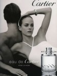 Zo omschrijft de juwelier zijn eerste androgyne water: ‘Als in een stroom koel water omhult Eau de Cartier haar ingrediënten. Welkom en verfrissend als de simpelste uitingsvorm. Een vertrouwd element tijdens heldere ochtenden, en in haar geurige spoor is het leven puur plezier. Een onzichtbare, tastbare reflectie van de hervonden vrijheid om jezelf te zijn. Omhul jezelf met Eau de Cartier zo vertrouwd als een tweede huid. Niemand zal vermoeden dat deze simpele oplichtende nevel zo’n pure opbouw heeft; alle ingrediënten komen er samen in tot uiting’.