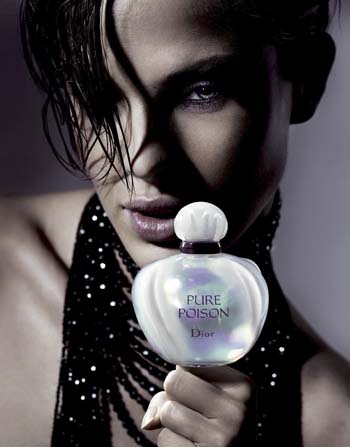 Had nog niemand gedurfd. Tot 1985: een parfum noemen naar vergif. Brutaal, gewaagd, provocatief en succesvol. Zó succesvol dat sommige restaurants de volgende mededeling op de entréedeur plakten: Forbidden for Poison! Negen jaar later trakteerde Dior ons op een mildere variant – Tendre Poison – en vier jaar later zag onder auspiciën van John Galliono Hypnotic Poison het licht. Maar vergif in zijn zuiverste vorm, daar bleef de wereld van verstoken. Tot 2004, toen werd in opdracht van Dior door neuzen een nieuw gif gebrouwen: Pure Poison. En daar is behoefte aan omdat ‘met de nieuwe eeuw een nieuwe generatie vrouwen is verschenen die behoefte heeft aan een nieuwe verleiding’. We geloven Dior!