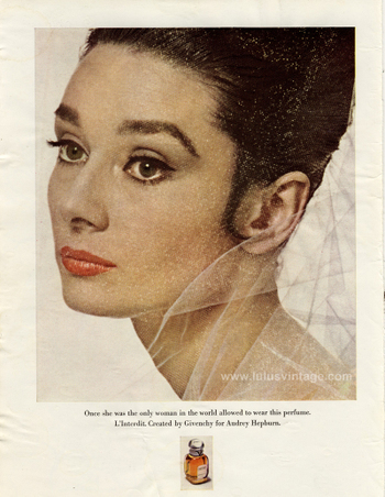 Elke grote kunstenaar heeft zijn muze. Elke grote couturier ook. Hubert de Givenchy trof het dat hij in het begin van zijn carrière – de jaren vijftig – actrice Audrey Hepburn ontmoette. Zij vertegenwoordigde een nieuw soort vrouw die na de Tweede Oorlog op het podium verscheen: slank, mager, kort geknipt haar en met een boyish charme die in een eenvoudige zwarte broek met dito truitje even glamour bezat als in een adembenemende couturecreatie. Givenchy voorzag haar van beide looks. Sterker, hij werd haar personal dresser, beste vriend en verzorgde veel kostuums voor haar films. In 1957 lanceerde de couturier twee geuren. De eerste, Le De, was een parfumpresentje voor zijn groeiende clientèle, de tweede was een ode op – en een tijdje het privéparfum – van Audrey Hepburn. Met L’Interdit bracht Hubert de Givenchy de niet te imiteren gratie, stijl, glamour, slimheid en charme van Audrey Hepburn tot uiting. Het is hem gelukt. L’Interdit wordt inmiddels beschouwd als een van de verfijndste bloemenaldehyden van de afgelopen eeuw.