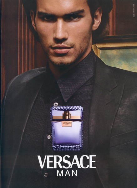 Let ook op de verpakking. Om het ‘klassiek in een modern jasje’-effect te onderstrepen, werd de ouderwetse omdoos – die je open schuift – voorzien van een leereffect op donkerpaars papier. Ook de flacon is typisch Versace: transparant paars met een letterlijk edgy randje. En nu de gebruiker. Opvallend: zuslief ziet de Versace-Man anders dan broerlief. Zeg maar meer man: virieler, mannelijker, macho-er. Kortom, de man op veroveringspad waar Donatella waarschijnlijk geen nee tegen zou zeggen.