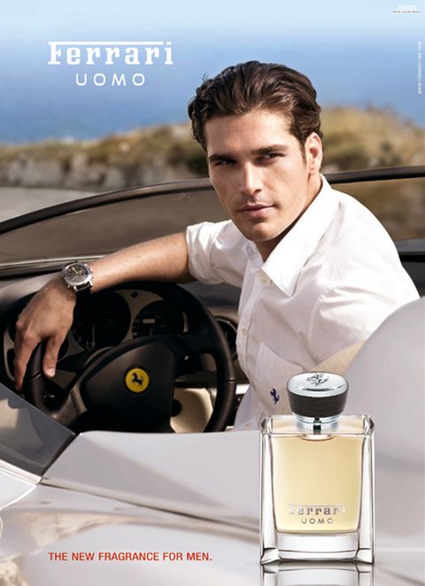 In het Engels klinkt het nog mooier: the advertising image and the tv spot have the strategic goal to visualize for the first time the class of the Ferrari Prestige Lifestyle playing with the luxery codes of a premium fragrance. The Ferrari Uomo, his lifestyle, his perfume. The strong man’s values – charisma, passion, self confidence, virility, sporty but with attitude – combined with a high hedoism – the unique style, the taste of the connoisseur, the pleasure of beauty in a very contemporary way. Everything is simply perfect: the man, the car, the wonderful mediterrean landscape.