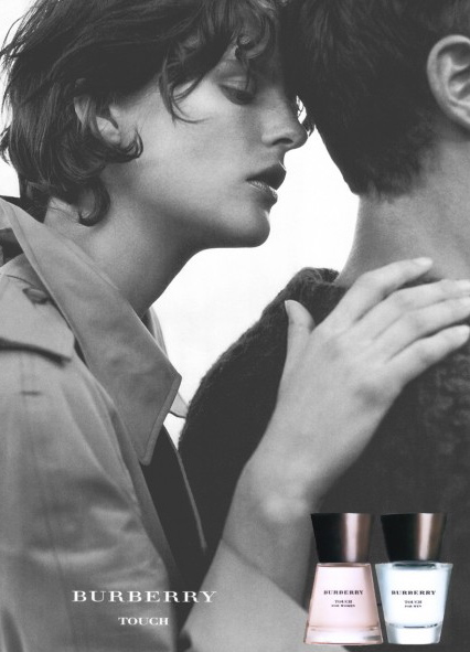 Burberry Touch for Men wordt verpersoonlijkt door het model van Engelse aristocratische afkomst, Stella Tennant. Omdat zij op een vanzelfksprekende manier ‘de oude degelijke luxe van het merk combineert met het nieuwe luxe gevoel van nu’. Maar wie nu het mannelijke model is dat Stella Tennant zo innig ‘toucht’ daar ben ik niet achtergekomen.