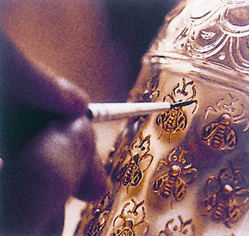 Vergeet niet dat eau de cologne in die dagen niet alleen puur voor het geurgenot werd gebruikt. Het was eigenlijk een soort EBHO bij toevallen, kiespijn, migraines en ‘vapeurs’ – van laatste twee schijnt Eugénie nogal last van te hebben gehad. En door het hoge alcoholpercentage deed het ook uitstekend dienst als ontsmetter van wonden. Nog even iets over de flacon waarin Eau de Cologne Impériale huist. Die wordt nog steeds in de originele versie geleverd. Dat wil dus zeggen dat de 69 bijen die de ‘ruche’-flacon sieren met de hand beschilderd worden. En wel met ‘vloeibaar goud’. Verkrijgbaar in 250, 500 en 1000ml. Wordt op verzoek van de gelukkige koper voorzien van zijn initialen – ook in vloeibaar goud. Spreekt voor zich.