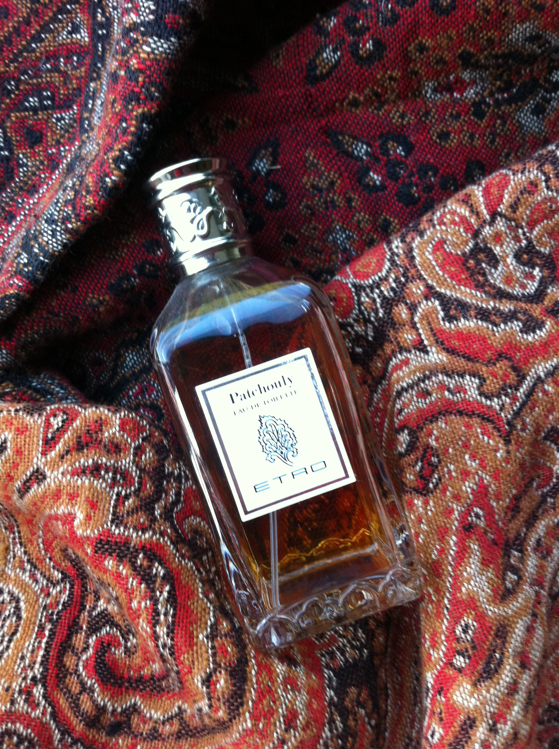 Er zijn de laatste tijd een aantal ‘gekleurde’ patchoelie-geuren verschenen, dat ik uit louter twijfel weer eens ben gaan ruiken aan flacons die mij weer op het rechte patchoelie-pad brachten. Flacons waarvan de inhoud me weer in herinnering brengen hoe een puur patchoelieparfum eigenlijk moet ruiken, gevrijwaard van ‘overbodige’ bloemen en bijtjes die de ware essentie maskeren. Een goede ‘stijloefening’ is dan Patchouly van Etro: ruw, stoffig, houtig, droog en warm. Nou vooruit, zelfs een beetje muf. Alsof je ruikt aan een oude kasjmier foulard van je (groot)moeder jarenlang verborgen in een kledingkist op zolder. Dit zegt Etro over Patchouly: ‘Adonis liet Aphrodite, zelf godin van de liefde, verliefd op hem worden. De mythe zegt dat hij zo mooi was dat hij iedereen verblindde die naar hem keek. Sterker, ze waren sprakeloos en overweldigd door zijn good looks’.