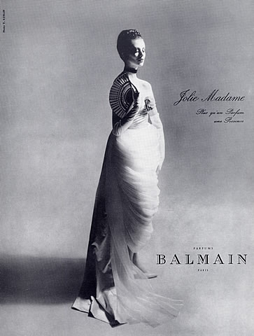 Het parfum werd zo populair dat Balmain er zelfs een kledinglijn naar vernoemde. In de loop der jaren is het parfum vaak onder het mes gegaan. Het gevolg: Jolie Madame is minder resoluut, minder overrompelend. Ik heb een vintageversie uit het begin van de jaren zeventig op de kop weten te tikken en hierin ontbreekt ook al die typische ruwe en dierlijke noot die van de oorspronkelijke Jolie Madame (ooit geroken bij een diehard-fan) in vergelijk met de nieuwe ‘madames’ eigenlijk een Madame Méchante maakt die je maar beter met leren handshoenen kunt aanpakken…
