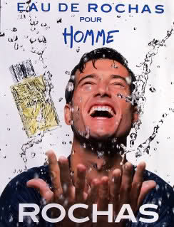 Nu wil dat niet zeggen dat je voor dergelijke puur natuurervaringen alleen in de nichesector terechtkunt. Nee, ook merken uit de masstigesector (samentrekking van massa en prestige) hebben ze nog in voorraad. Moet je wel even zoeken. Zoals Eau de Rochas pour Homme. Is voor mij nog steeds een van de meest verkwikkende citrusgeuren aller tijden. Heb er flessen van leeggespoten. En ben er vaak mee onder de douche geweest omdat Rochas voor een ‘weggeefprijs’ in Frankrijk een douchegel verkocht in literverpakking. Heel sterk heb ik ook altijd de eerste campagne gevonden (foto boven): de man onder een splash van Eau de Rochas pour Homme. Die man heeft er ‘weer zin an’. Dat wil je ook ervaren. In de tweede campagne (onderaan) denk je met een geur van Calvin Klein vandoen te hebben.