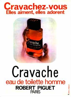 Dat kan helaas niet gezegd worden van de enige mannengeur van het huis: Cravache, dat zweep (van leer) betekent. Het verscheen zonder enige inbreng van de couturier; die overleed namelijk in 1957. De Nederlandse taal kende vroeger ook een verbastering van het woord dat tegenwoordig zelden nog wordt gebruikt: karwats. Het roept de wereld op van zweet, paarden, hooi, leer en bos.