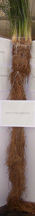 Deze kruidigheid krijgt pit, ‘een gespierde vibratie’, door zwarte peper uit Madagascar en rozemarijn uit Tunesië. En dan waar het om gaat in Homme Boisée, vind je in de basis: een ontmoeting met de aarde, met het hout. ‘Geïdentificeerd in overdosis’, cederhout uit het Atlasgebergte (helder, droog, zonnig) en vetiver uit Haïti (diep, donker, groen – foto). En wat krijg je dan volgens Kenzo: ‘de kwintessens van mannelijkheid’. Mooi vind ik de link tussen basilicum en peper. Laatste versterkt de peperige nuance van de eerste. Ook aangenaam: ondanks de ‘aardsheid’, blijft de geur luchtig; een boom die reikt naar de hemel.