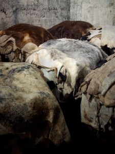 Ofwel, honingzoete bloemigheid gecombineerd met bittergroen alsem (waar absint van wordt gemaakt). Dit alles verliest zich in de stoffig-donkere en poederachtige basis van iris. De iris lijkt vervolgens zacht, boterachtig (denk lippenstift) te worden. Komt door de toevoeging van musk, leer (foto) en… ‘bont’. Het effect: 1889 Moulin Rouge wordt animaal. Dat laatste wordt versterkt door patchoeli. Als je niet oppast, raak je in trance.