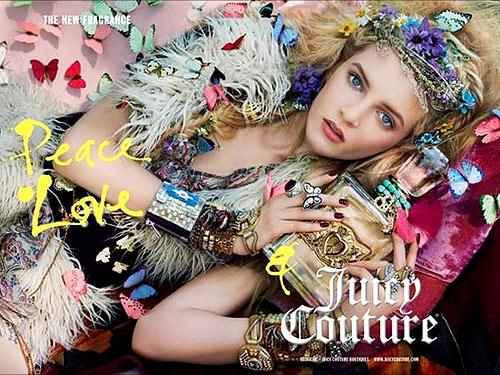 Ik moet altijd erg om de geuren van Juicy Couture lachen omdat ze parfumwereld absoluut niet serieus nemen. Zie je aan de campagnes (wat een knipogen!), ruik je aan de geuren. Die zijn gewoon ‘gezellig’, ongecompliceerd en doen mee aan de laatste (geur)trends. Of niet? Of wel? Want soms denk je dat een trend nu écht wel voorbij is, blijkt het in alle heftigheid en vol overtuiging opnieuw geboren te worden. Ik bedoel dus de hippie chic-trend, of noem het de neo hippie-look.