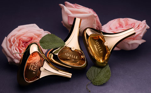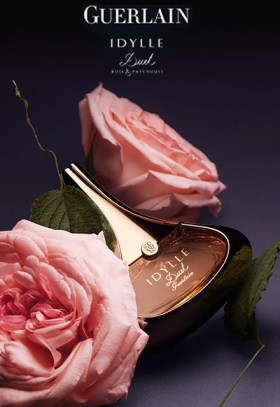 Hiervoor werd de roos ‘volledig herzien’. De keuze viel ‘op een Bulgaarse roos gekweekt in hooggelegen tuinen’. De door Thierry Wasser en Jean-Paul Guerlain geselecteerde ‘communelle’ produceert de edelste rozenolie buitengewoon rijk aan aroma. Het effect: fruitiger, ‘rijper’. Door het te linken aan Indonesische patchoeli met een luchtiger (dus opgewekter), minder overdonderend, minder koppig aroma ‘ontstaat een sensueel parfum als een nocturne doordrongen van ontroerend zingenot’. En doordat de musknoten uit Idylle Eau de Parfum zijn onderdrukt, onderga je de roos-patchoeli-combinatie nog beter.
