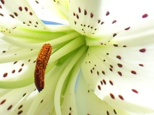 Ik las op een Frans parfumblog dat wanneer Mathilde Laurent mensen vroeg naar hun favoriete bloem, de meesten lelie zeiden. En ook dat ze geen zin had om de ‘duizend-en-eenste’ floriental en een nieuwe bloemencompostie toe te voegen aan het assortiment. Daarom werd Baiser Volé een leliegeur waarin zowel het blad, de bloem als de stamper tot leven komt. De stam staat dus volgens mij voor frisse groenheid, de bloem voor de bloemengeur en de stamper voor de poederige en sensuele noot.