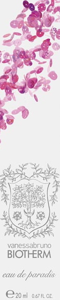 Bij het paradijs denkt Biotherm aan een plek in het hiernumaals. Dit hof van Eden is niet exact topografisch aangegeven, maar bevindt zich in ieder geval ergens in de tropen en op een eiland. ‘Daar’ deed Biotherm de inspiratie op voor deze fris-fruitige geur die zijn noten verspreidt als een opstijgende dauw waaruit bloemen opbloeien die zich laten verwarmen door de zon, en je – meestal om te beginnen – thuis het gevoel geeft alsof je ontwaakt in een tropische paradijs.