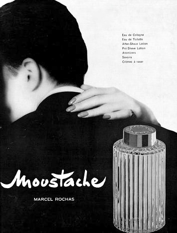 Interessant om te lezen is dat het recept niet werd bedacht door Edmond Roudnitska, maar door zijn vrouw Thérèse. Op een van de meest interessante parfumblogs – www.perfumeshrine.blogspot.com – wordt daar in ieder geval melding van gemaakt. Het mooie aan Moustache is dat het een soort een ruwe handtekening is van Roudnitska’s parfumstijl dat hij in de loop der jaren via Eau d’Hermès (1951), Diors L’Eau Fraîche (1953), Eau Sauvage (1966) en Diorella (1973) steeds meer verfijnde. Zijn schrijfwijze: helder, simpel en ‘strak’. Geurtechnisch betekent dat een voorliefde voor ‘gefermenteerd’ fruit, heldere bloemnoten, mosvochtige en bosachtige ondertonen verfijnd door het ‘urine-aroma’ van animale noten: civet, leer, ambergris en bevergeil. Dat laatste schijnen ‘we’ niet meer lekker te vinden. Dus daarom zijn deze ‘geilmakende’ toevoegingen in de nieuwe formules er uit helaas uitgezeefd.