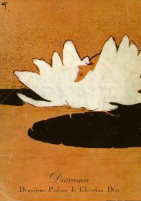 In vergelijk met deze ‘wild-animale’ parfums was Diorama een fragiel wonder van licht, een wonder van lucht, een wonder van transparantie dat goed werd verbeeld door de ‘huisillustrator’ van Dior, René Gruau: een in een bloem slapend nymfengezicht, een gedrapeerde handschoenen plus een fragiele mousseline couturecreatie op een Louis XVI-stoel.