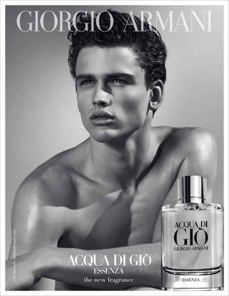 Hoe merkwaardig nu: deze manier van geuren maken, wordt visueel nog steeds ‘natuurgetrouw’ geïnterpreteerd. Dat wil zeggen, iets wat de man direct herkent: een duik in de zee, het liggen aan een strand terwijl waterdruppels glinsteren op de huid. Dat zie je in de campagne van Acqua di Giò pour Homme en ook weer in Acqua di Giò Essanza pour Homme – het model kijkt trouwens weer lekker gekweld moeilijk; hij toch zou moeten genieten van al die aguapret. Terwijl de inhoud weer een stap verder verwijderd van de natuur en een stap dichterbij is bij een totale abstracte interpretatie van geur, van geur als de som der dingen, met als eindresultaat: een geur die naar alles en niets ruikt.