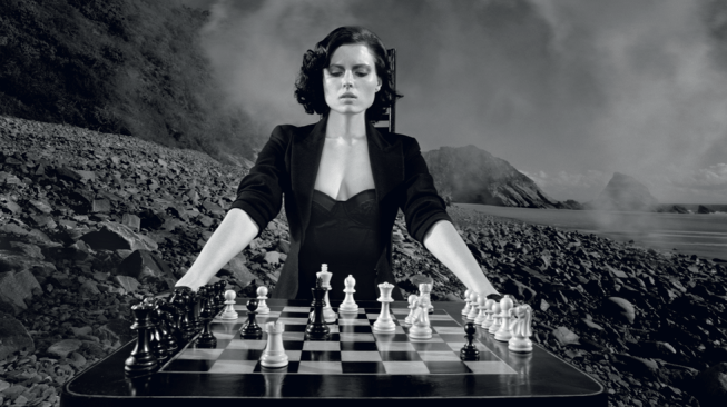 Ze staat bij een schaakbord. Speelt niet mee zo te zien. En draagt zowaar meer dan alleen lingerie. De witte koningin – is zij het? – staat ‘even ver’ van de witte en zwarte koning. Het is een kwestie van één zet die bepaalt of ze een van de koningen krijgt, schaakmat zet. Of slaat mijn fantasie nu op hol? De promotieclip toont een ander beeld. Helemaal Agent Provocateur dat wel. Bloedmooie vrouw laat, na zo te zien een broeierige nacht te hebben beleefd, haar hond uit in – afgezien van haar korte jas – slechts luxe lingerie van Agent Provocateur.