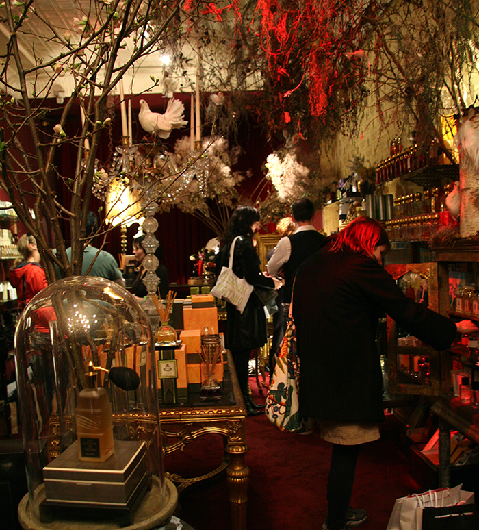 Oeillet Bengale is voor mij een voorbeeldfunctieparfum: geen kopie en dus bevestiging van een klassiek parfumthema, maar gaat een stap verder. Het voegt elementen toe die – in dit geval de anjer – een nieuwe setting biedt, waardoor die op een nieuwe manier begint te bloeien, waardoor je er op een nieuwe manier van kunt genieten. Barok in de zin van rijk en gedifferentieerd, niet in de zin van Aedes de Venustas’ winkelinrichting (foto). Zou Geurengoeroe aan eindejaarslijstjes doen; Oeuillet Bengale een toptiennotering waardig.