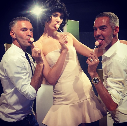 De lolly vind je terug in de dop. Of althans dat ‘proef’ ik. Nu denk je misschien: de inhoud ruikt vast gourmand, naar kermiszoetheid. Niet dus. Zie ruik & vergelijk. De inspiratie – ‘de veelzijdige, eigentijdse vrouw’ – is bijna teleurstellend, want zo mainstream, so not Dean en Dan Caten – de mannen achter Dsquared2. Want: ‘Ze belichaamt vrouwelijkheid die zowel sterk, glamoureus als gedurfd is. Eenvoudig en vol spontaniteit. Dynamisch en vindingrijk. Haar vastberadenheid maakt haar spannend, authentiek en sexy. Ze is een verzameling van contrasten en al haar facetten zijn adembenemend’. Vandaar niet één foto van Rianne ten Haken, maar ‘een serie portretten uitdagend vastgelegd door Inez en Vinoodh die verschillende emoties oproepen’. Bij wie? Bij mij maar één: vul maar in. En staat Dan nu rechts of links van Rianne (met pruik?)? Of is het nu andersom?