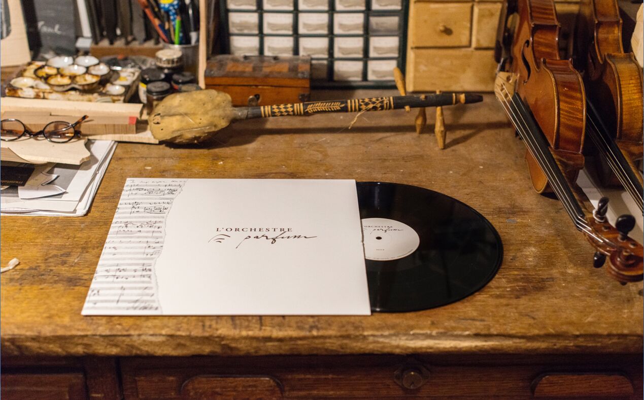 Hij filoso-babbelt door: ‘Ik heb L’Orchestre Parfum uitgevonden om deze emoties nieuw leven in te blazen en te delen. Draag een liedje, luister naar een parfum. Ik heb veel ateliers van gitaarbouwers bezocht en heb met de beste Franse vakmensen gewerkt om de geur van muziekinstrumenten te begrijpen en te voelen: essences van gitaarhout, trombone koper, kora-leer. Twee grote parfumeurs combineerden deze essences vervolgens met de mooiste parfumtonen: néroli, roos, kruiden.’