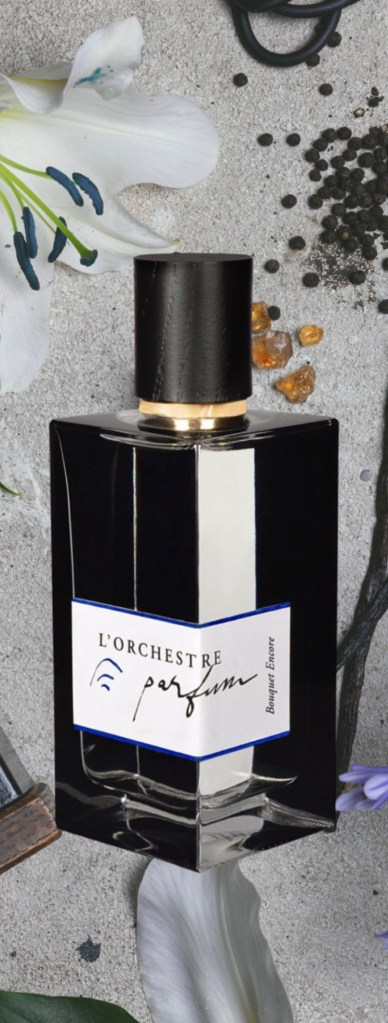 Rose Trombone – stelt niet teleur als klassiek rozenparfum. Vol, ‘vloeibaar’ en toch helemaal nu want ook clean én met de zoete zweem van rijpe peer. Lekker ‘ouderwets’ daarentegen: de aldehyde-flits. Maar alles voelt vertrouwd door vanille. Nou nog eentje dan, en dan puur om de naam: Bouquet Encore. En helemaal nu, want dit jaar gelanceerd. Op papier: een killer door tuberoos en jasmijn. On the dance floor: