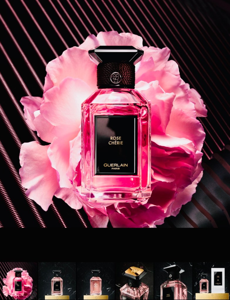 Kan d’r ook nog wel bij: ‘Liefde is een onuitputtelijke bron van inspiratie voor de parfumeurs van Guerlain. De signatuur van Rose Chérie doet denken aan La vie en rose, de Parijse liefdesverklaring en de belichaming van romantiek voor geliefden over de hele wereld. De roos in Rose Chérie is overvloedig aanwezig in al haar nuances en vormen, door middel van rozenwater, essence en Damascusroosabsolu, met de hand geplukt in Bulgarije en Turkije, evenals de zeer gewilde centifoliaroos, afkomstig uit Grasse’.