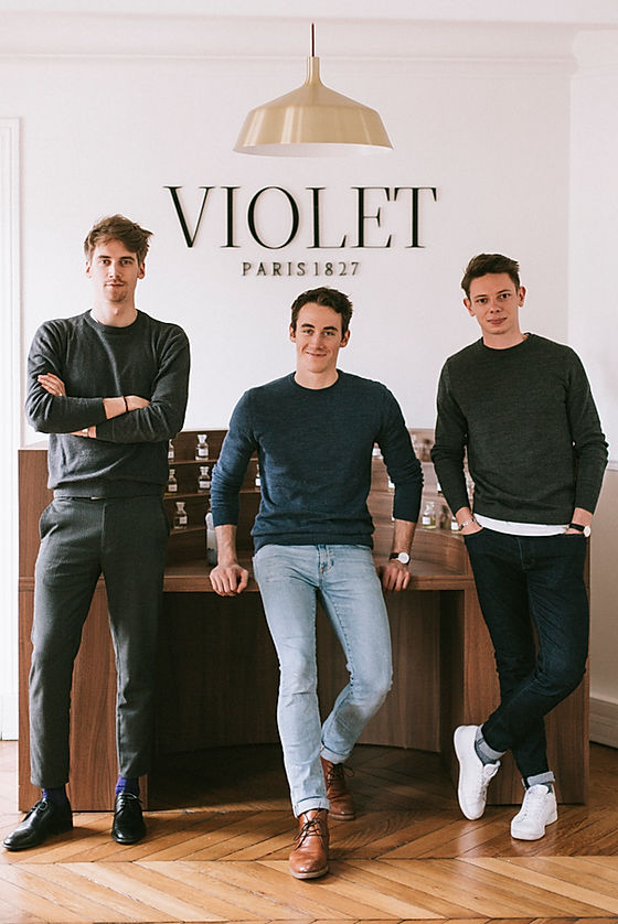 Los van de geur, viel ik met Sketch in een andere verbazing: wéér een vergeten parfumhuis uit de mottenballen gehaald. In dit geval door drie jonge mannen – Anthony, Paul, Victorien; kan geen achternamen vinden – die elkaar ontmoeten op de École Supérieure du parfum en in al het eerste studiejaar – ‘gepassioneerd, onbevreesd en vooral heel zorgeloos’ – besluiten een eigen parfummerk te creëren. Lang verhaal kort: hun ‘niet aflatende liefde voor parfums begin 20ste eeuw en interesse in vintagegeuren dreef ze, zonder het te weten, naar de Reine des Abeilles-parfumerie die ze tijdens hun onderzoek waren tegengekomen’. Et voilà: ‘De restauratie van Maison Violet leek ons voor de hand liggend’. Zelf noemen ze Reine des Abeilles (bijenkoningin) op hun site Queen Bee – nou dat zal Beyoncé zeker ter ore zijn gekomen.