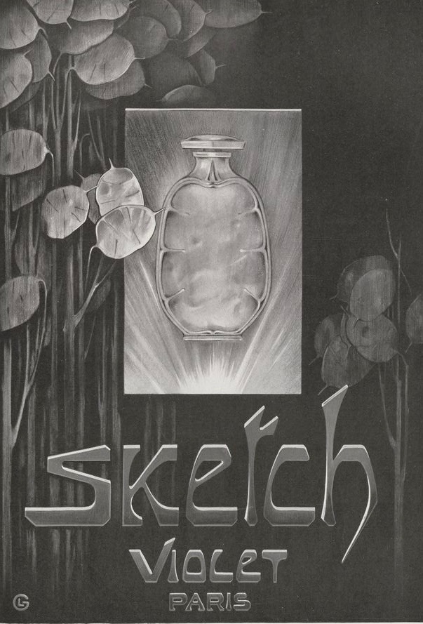 Het venijn zit’m in de staart. Niet in de geur, maar in mijn kritiek. Want, jongens wat is de presentatie toch pover in vergelijk met het oorspronkelijk vormgegeven Sketch. Wat een subtiliteit in de advertentie en flacon – met de judaspenning als uitgangspunt. En dan het lettertype! Écht over nagedacht. Vergeet niet dat in die tijd (les années folles de la jeunesse dorée) de concurrentie in de parfumindustrie even moordend was als nu en dat dat juist een aanzet was om met gedurfde en onderscheidende esthetiek je handtekening onder een product te zetten.