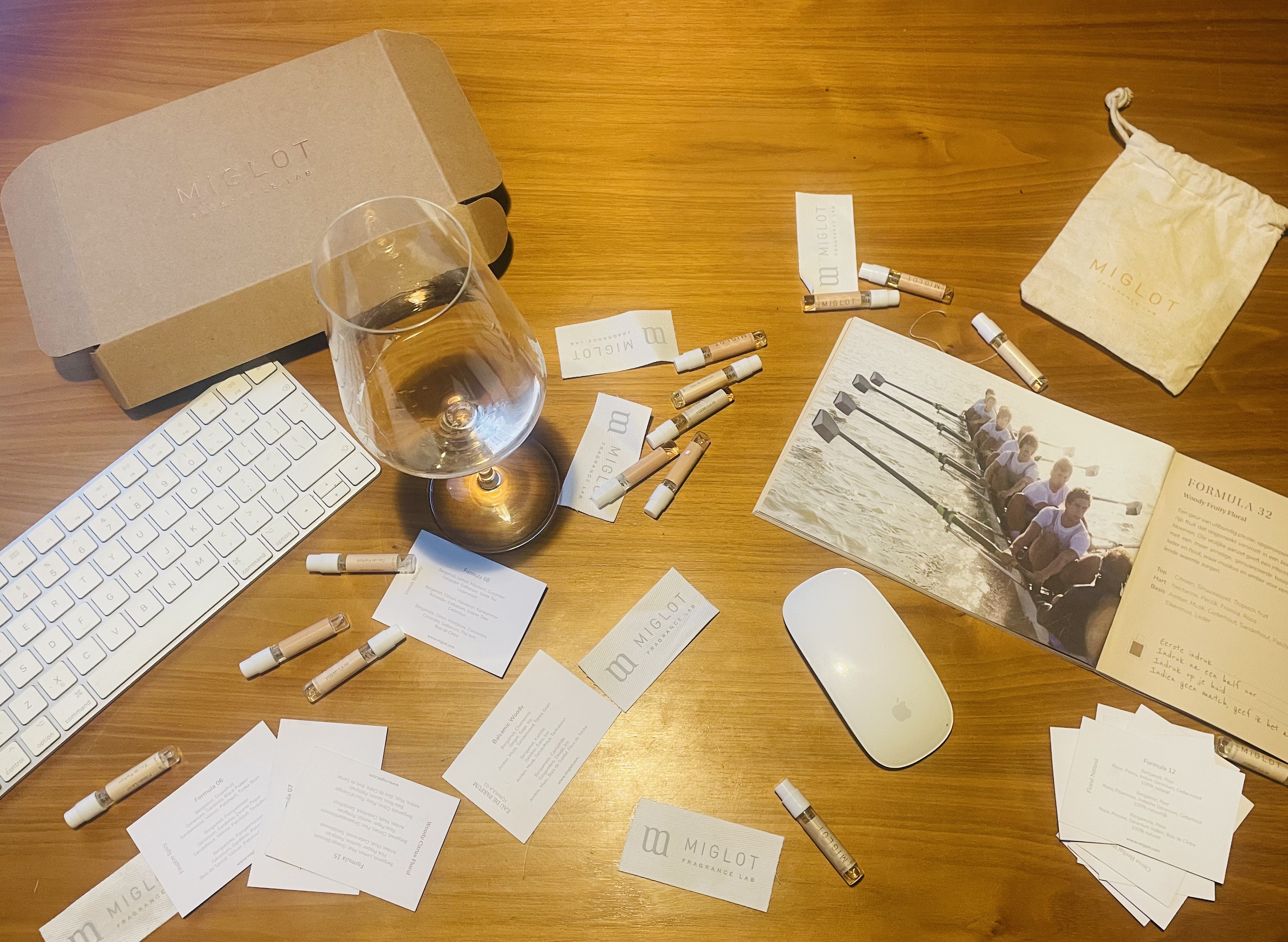 Ik wil maar zeggen: bij echte interesse, verdiep in je in geuren net zoals je dat ook met je favoriete hobby doet. Onderzoek, afvragen, verzamelen – je wordt een gelukkiger mens. Zolang het nog niet klassikaal verplicht wordt gegeven, volg dan een ‘masterclass’ bij een parfumeur. Kristof Lefebre – opgeleid aan de ISIPCA is volgens mij een geschikte docent. Hij is de man achter het parfumhuis Miglot (anno 2020) – een ‘verfransing’ van ‘my glow’. Want dat is de bedoeling: dat je door zijn geuren gaat glimlachen (iets wat volgens mij de meeste geuren doen, mits je ze aangenaam vindt).