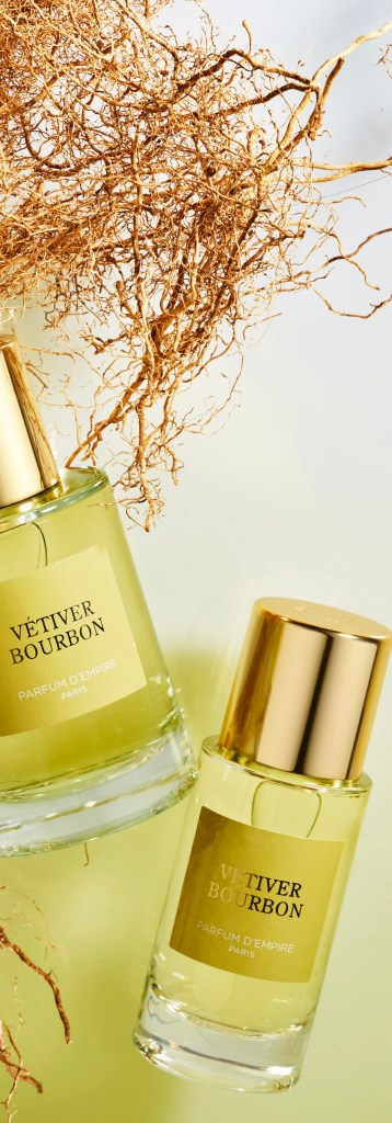 Maar toch moest ik ook ‘bekennen’: ik kom na omzwervingen regelmatig terug bij vetiver. Nu gebeurt er op dat gebied nu niet veel spannends. Dacht ik. Tot ik weer eens bij www.parfumaria.com – kwam (had een vriend getrakteerd op een afspraak). Zoals gewoonlijk bij haar: eerst overvallen door een depressief gemoed door het ‘intimiderende’ aanbod, werd ik allengs enthousiast. Mijn voornemen om ‘lekker veilig’ Bandit te kopen, toch een van mijn all time favorites, lonkte naar mij na een paar door Maria voorgestelde geuren (kom ik op terug) Parfum d’Empire. Ze had me dus niet verteld dat de neus achter dit merk Marc-Antoine Corticchiato zich al in 2022 over deze edele wortel had gebogen.