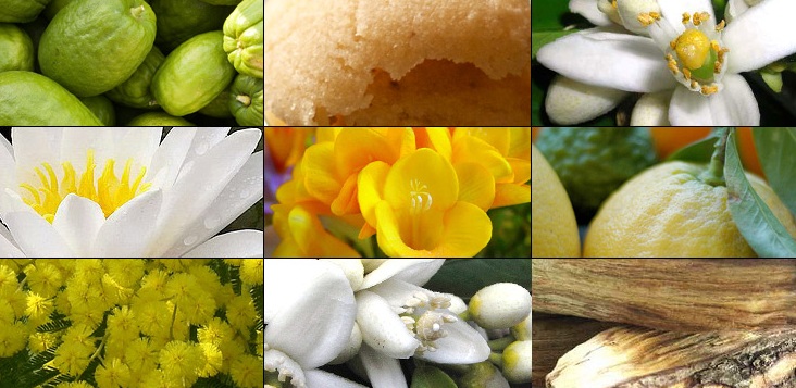 Eerst is er de ‘verrassing’: de kristallen helderheid van citroen uit Diamante. Nee dit is geen fantasiestad, het ligt in Calabrië, een belangrijk gebied voor de productie van citroen en bergamot – naar men zegt. Deze citroen wordt vermengd met bergamot en neroli. Dan is er de ‘beweging’: oranjebloesem gekoppeld aan (gele) fresia en mimosa.