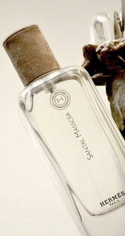 Eerst is een opening die je als Ellena’s handtekening voor Hermès kunt beschouwen: een lichtgroene noot die zweeft tussen vijg en groene thee. Die wordt opgelicht door een lichte aldehyden-injectie al voor je de kennismaakt met de ware essentie van de geur: sandelhout vermengd met massoïa die lijkt versterkt met vanille en een lactone-ingrediënt voor het zeer subtiele gourmand-effect van Santal Massoïa: karamelpasta.
