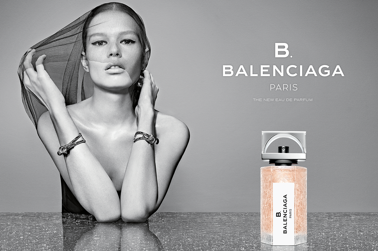 En B. zou volgens mij nog meer Balenciaga zijn geweest als de iris ‘boteriger’ en de ambrette voller en het hout meer ‘sandel’ was geweest. Dan krijg je zo’n lekkere, volle vanzelfsprekende chic. Toch, nu al, inhoudelijk een goed geslaagde poging om het vernieuwde Balenciaga-dna voor te zetten. De buitenkant? Alleen als je vindt dat deze esthetiek veel overlappingen heeft met die van andere luxemerken ‘in overgang’: amechtig, naar anorexia neigende modellen die je zielloos, ‘de-humanised’ naar de camera, naar jou staren.