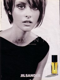 Zij ‘straalt een hypnotiserende schoonheid uit, draagt Simply als een tweede huid – het maakt haar look af’. Zij ‘belichaamt et haar neoklassieke schoonheid en gebeeldhouwde lichaam de Jil Sander-stijl: scherpzinnige, luxueuze en subtiele mode voor een zelfverzekerde persoonlijkheid’. Zij ‘brengt Simply tot leven, raakt de kern van Jil Sander-chic; een mix van architecturaal design en suggestieve sensualiteit’. Knap omschreven, maar zo kan die wel weer.